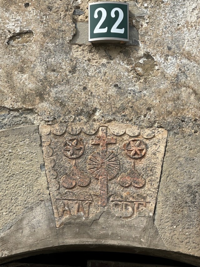 As we Camino’d along, every town we passed through had a Basque Pelota court, which resembled a large version of a New York-style handball court. And this curious form of the cross was common, and usually over a door.